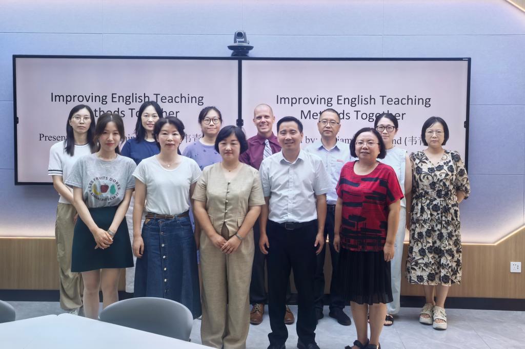 为进一步提升英语教学水平,9月11日,国际教育学院特邀美国外教Benjiamin Wellsand为英语教师举办了“如何共同促进英语教学”主题讲座。讲座由国际教育学院副院长颜天明主持,国际教育学院院长吴旭光和全体教师参加。