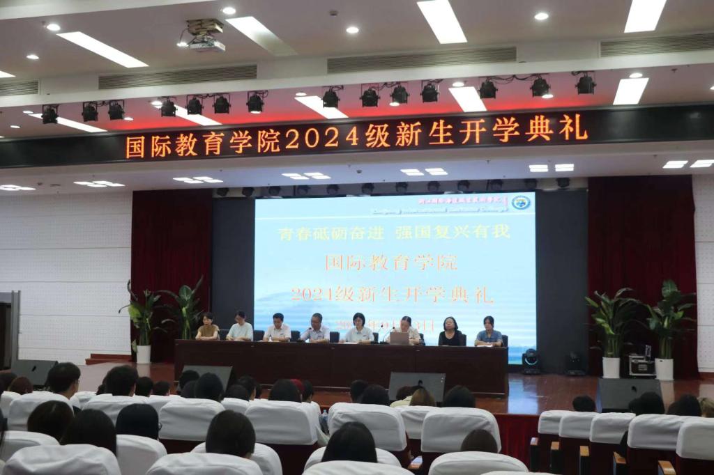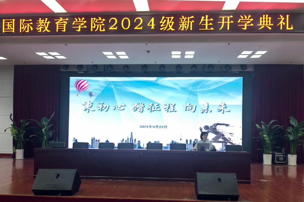 9月23日,国际教育学院2024级新生开学典礼暨理想信念教育在图书馆四楼报告厅举行。国际教育学院班子成员、团队负责人、辅导员、新生班级班主任及2024级全体新生参加,会议由国际教育学院党总支副书记虞艳娜主持。