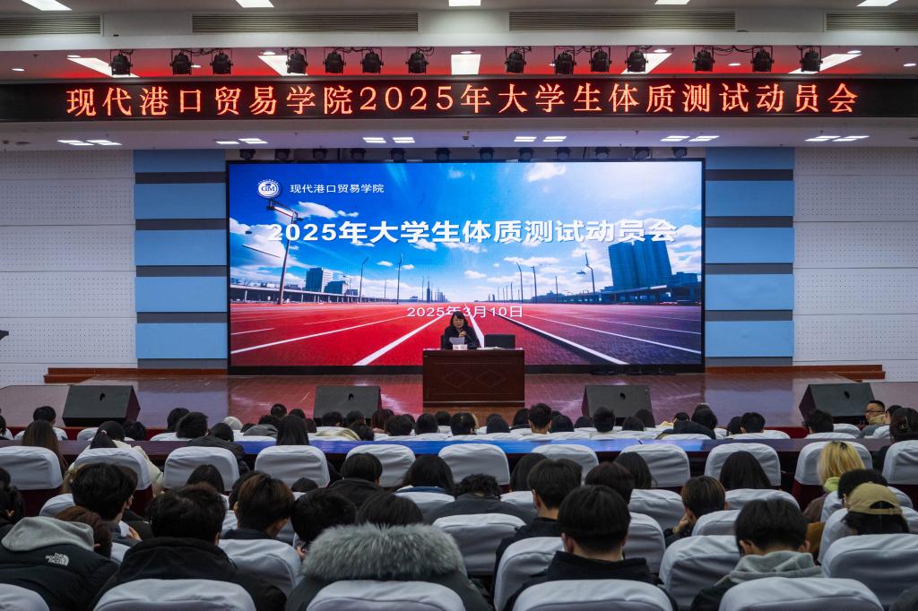 为迎接2025年浙江省大学生体质健康测试,3月10日,现代港口贸易学院在图书馆报告厅召开了2025年大学生体质测试工作动员会。学院党总支副书记邵佩华出席会议并作动员讲话,2023级全体在校生及相关辅导员参会。