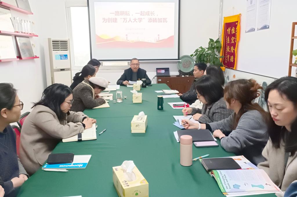 3月12日,国际教育学院院长吴旭光为学院全体教职工讲授了《一路耕耘,一起成长,为创建“万人大学”添砖加瓦》主题党课。