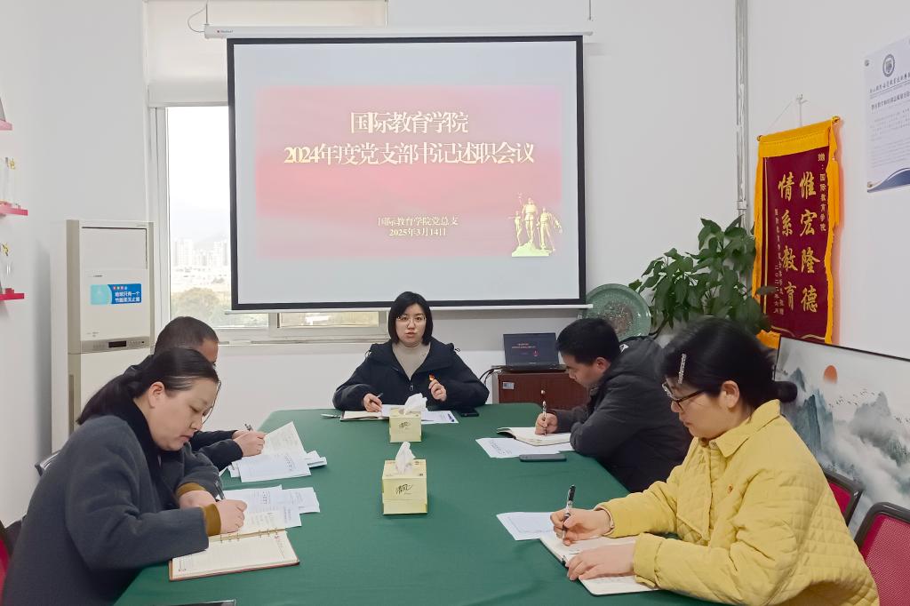 为深入学习贯彻习近平新时代中国特色社会主义思想,全面提升组织力,充分发挥党支部和全体党员在深化改革、创新发展、服务社会等方面的战斗堡垒和先锋模范作用,3月14日,国际教育学院召开2024年度党支部书记述职会议。学院党总支书记金洁主持会议,党总支委员、专职组织员参加会议。