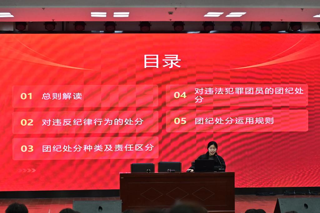在简短而庄重的开班仪式结束后,沈楷雯为同学们上了一堂生动的团课。团课以《守纪律底线,筑法治精魂》为题,深入阐述了纪律和法治在青年成长道路上的重要性,引导同学们自觉遵守法律法规和团的纪律,提升法治素养,努力成为新时代知法守法、德才兼备的优秀青年。