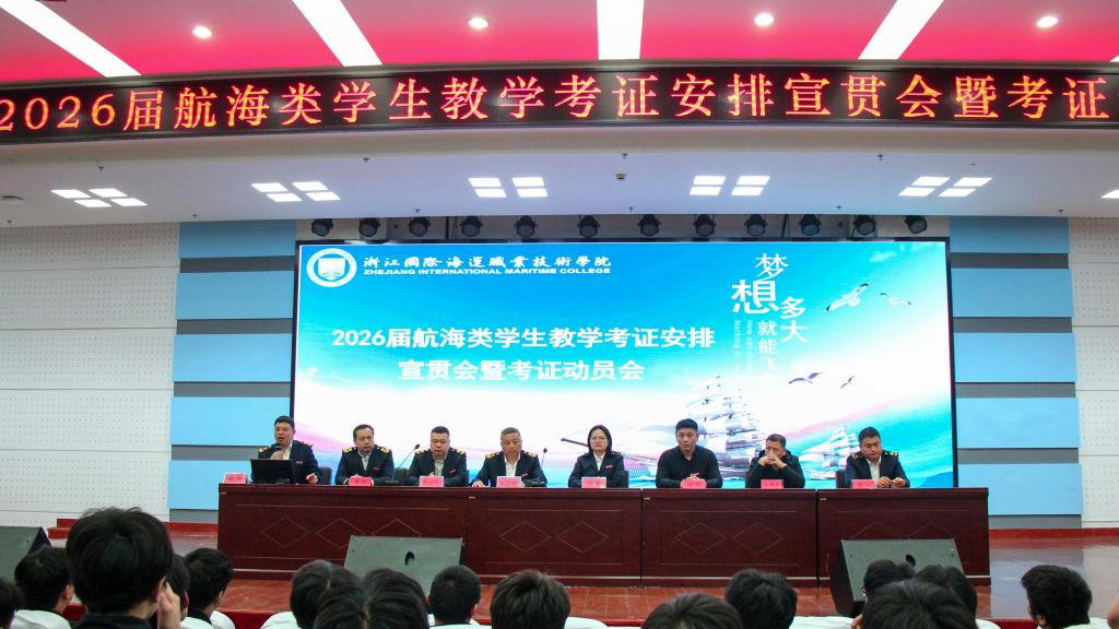 为提升航海类学生考证通过率,规划职业生涯,实现高质量就业,4月11日,航海工程学院结合2025届航海类学生教学安排与考证情况在图书馆四楼报告厅,召开2026届航海类学生教学考证安排宣贯会暨考证动员会。学院行政班子、专业团队长、班主任及辅导员参加会议,会议由副院长黄华主持。