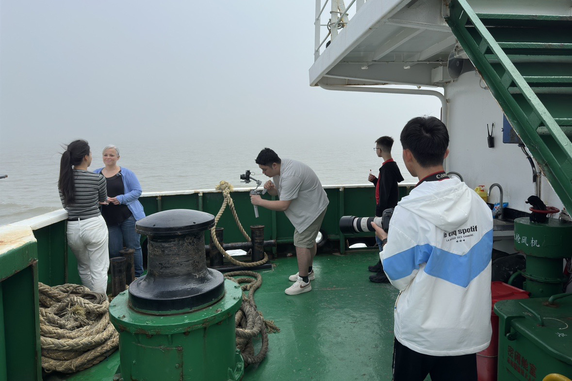 5月17日,我校海韵英语桥师生团队携手外教及家属,乘船前往舟山群岛的柴山岛,开启首期《小岛你好》双语纪录片拍摄之旅。团队以镜头为笔,记录这座小岛从传统渔村向“公益+艺术”特色海岛转型的生动实践,探寻海岛文化共富的新路径。