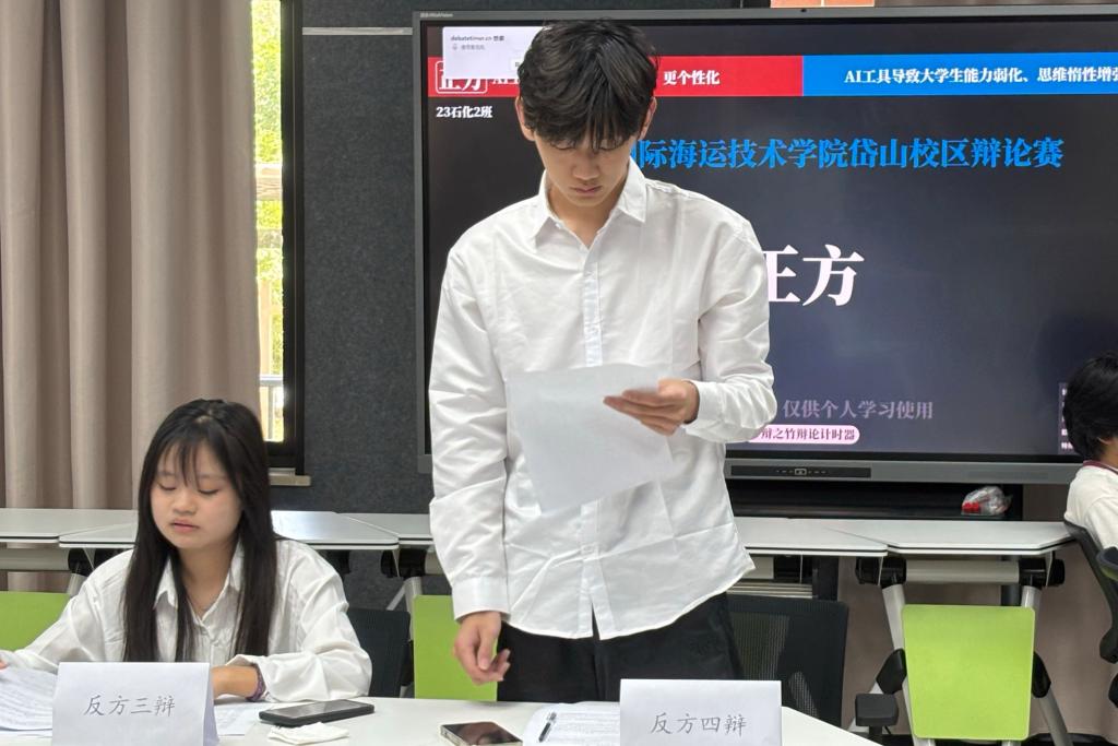 比赛现场气氛热烈,辩手们挥洒才情,带来了一场精彩绝伦的思辨盛宴。本次辩论赛以学风建设为主线,精心设置了一系列相关辩题。在决赛中,正反双方聚焦“AI工具导致大学生更高效、更个性化还是导致大学生能力弱化、思维惰性增强”这一极具时代性与现实意义的辩题,展开了激烈交锋。正方辩手凭借坚定的立场、详实的论据,全方位阐述了AI工具为大学生带来的诸多益处;反方辩手则以敏锐的洞察力和犀利的言辞,深入剖析了AI工具可能引发的弊端。自由辩论环节更是将比赛推向高潮,双方辩手你来我往,唇枪舌剑,妙语连珠,现场气氛紧张而热烈。