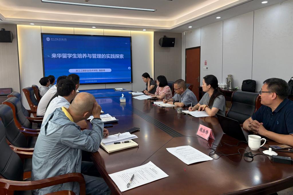9月28日下午,学校留学生工作交流会议在行政楼103会议室召开。会议特邀浙江工贸职业技术学院魏振锋教授作专题分享,校党委副书记孔志光与相关部门负责人出席。