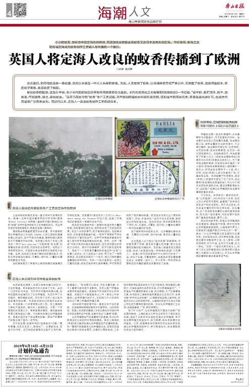一、英国人福琼把传统蚊香生产工艺由定海带到欧洲