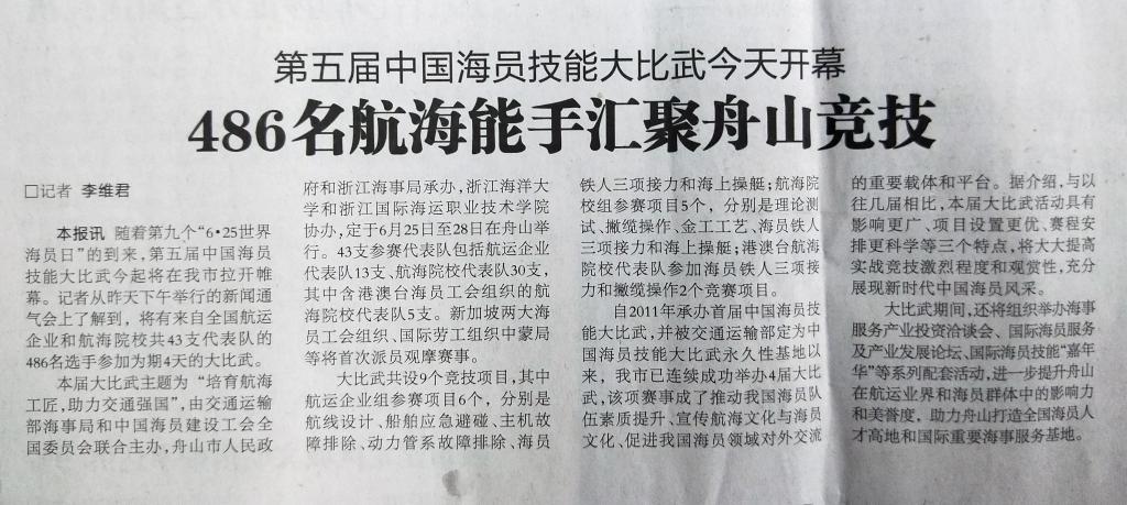 (2019年6月25日《舟山日报》头版 http://www.zhoushan.cn/newscenter/zsxw/201906/t20190625_931323.shtml)