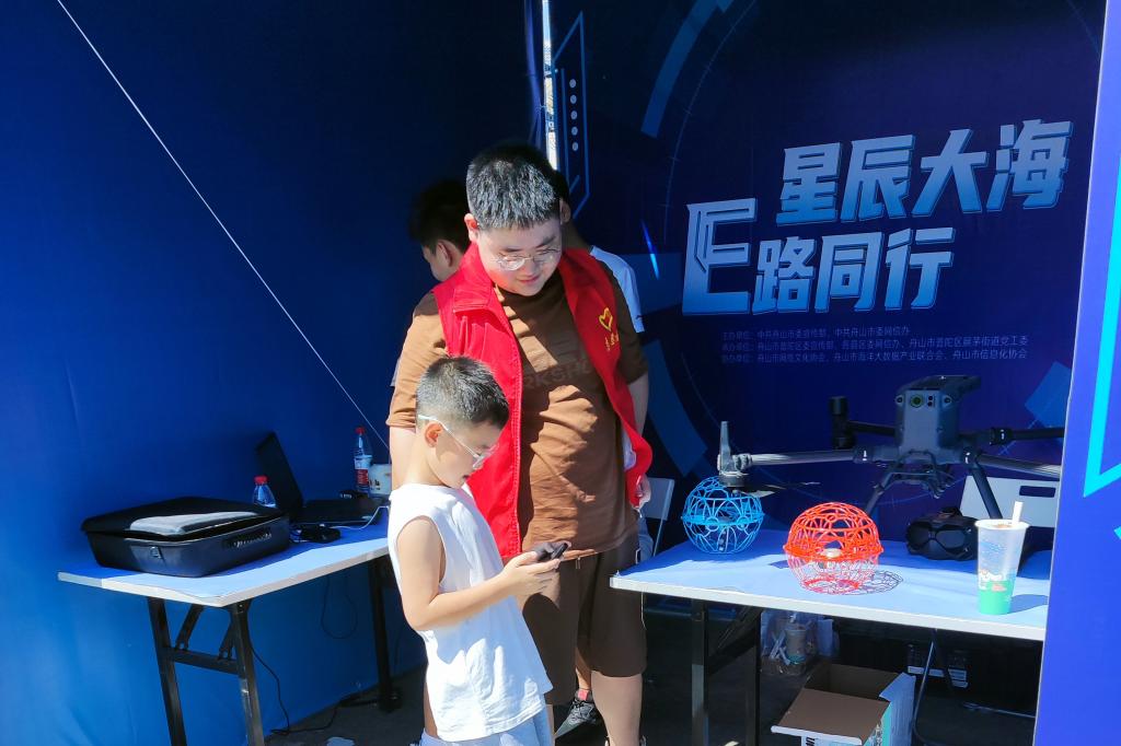 9月9日至10日,由市委宣传部和市委网信办联合主办的“星辰大海 E路同行”2023年第十四届舟山市网络文化活动季启动仪式暨首届乡村智享生活节,在展茅街道路下徐举行。活动期间,我校海洋装备工程学院无人机社团的学生志愿者在指导老师卓宏明与校企合作企业慈航科技的带领下在互联网主题市集亮相。
