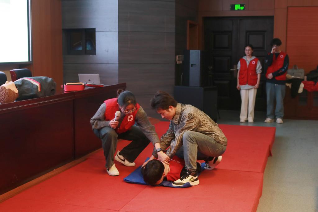 全体志愿者于3月26日接受了培训,对赛事的路线、规模、站点等信息有了清晰认识,培训老师还在仪态礼仪、语言服务、工作纪律等方面提出了具体要求,确保志愿服务的有序开展。医疗志愿者虽然均为学院急救培训中已经获得CPR+AED证书的持证人员,但是也接受了线下实操培训,包括心肺复苏、骨折包扎等,旨在教会志愿者在突发状况发生时的处理方法,保障参赛者安全。