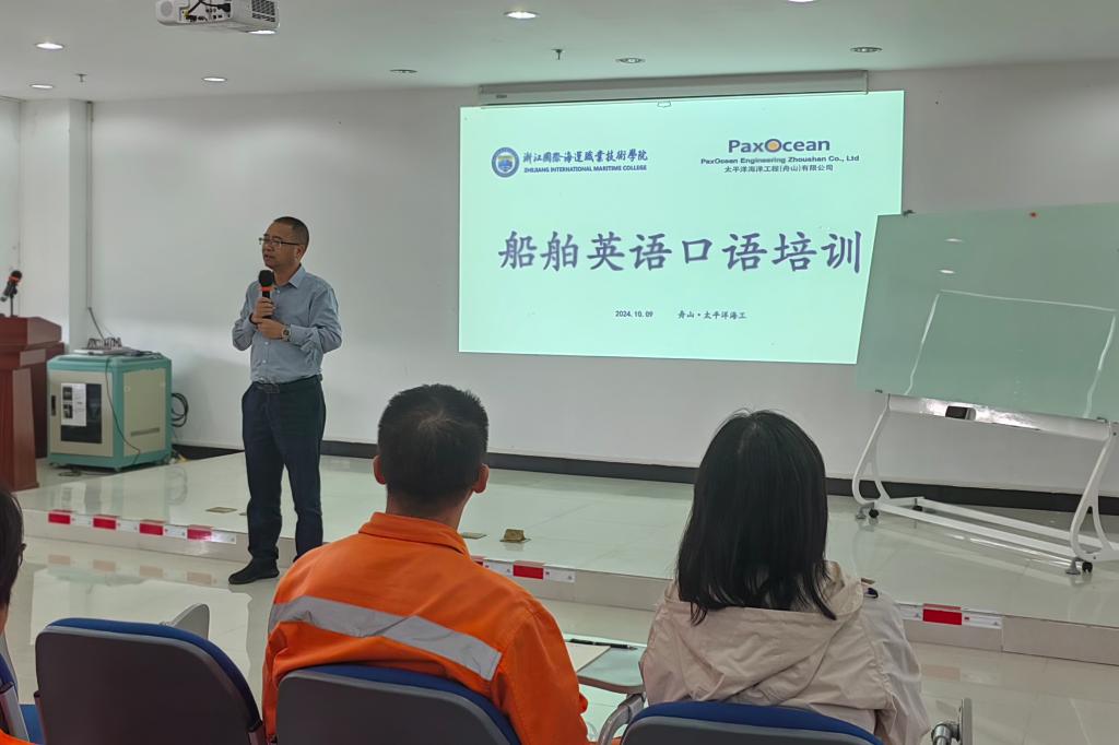 10月9日下午,受太平洋海洋工程(舟山)有限公司委托,由国际教育学院牵头,海洋装备工程学院教师共同参与的船舶英语口语培训班顺利开班。国际教育学院院长吴旭光、学院应用英语专业负责人高芳应邀出席开班仪式。